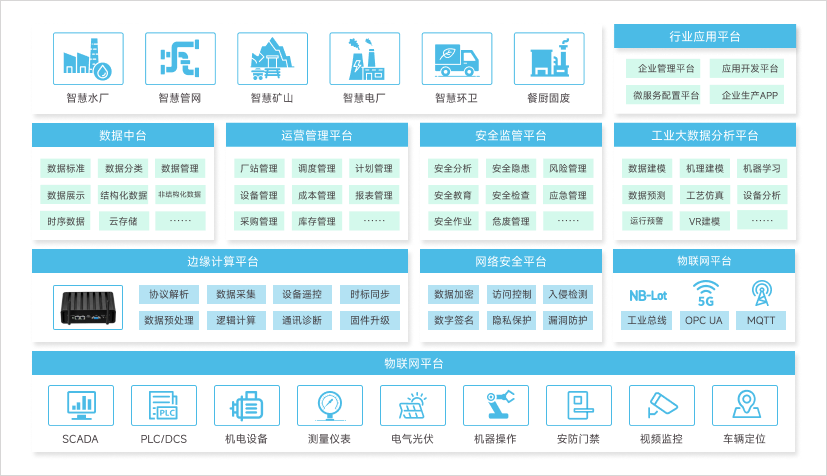 利用多协议支持、超强网络支持特性,打造实时智能感知系统、智能配电系统、设备预测性维护及全生命周期管理系统、以及移动中控室系统、安防门禁及出入管理系统等,实现针对公司水务生产各业务环节的全流程在线监控以及生产数据的智能在线分析,将物与人和流程全面连接起来,使水厂拥有极高的安全性和极强的稳定性,保障安全生产、水质稳定达标。